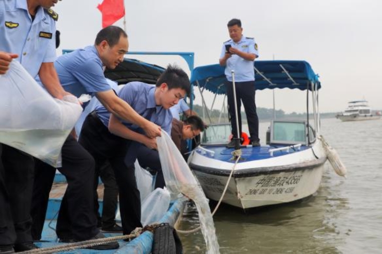 上午9时,活动正式开始。检察干警、农业农村局渔政人员和志愿者整齐列队,有序参与放流,共同将一尾尾优质鱼苗投入长江中。此次活动共投放90万尾鱼苗,除青、草、鲢等传统经济鱼种外,还增加了保护鱼类湘华鲮、本地特有物种草龟,对于补充和恢复长江水域渔业资源,改善水体生态环境,维护生物多样性具有重要意义。