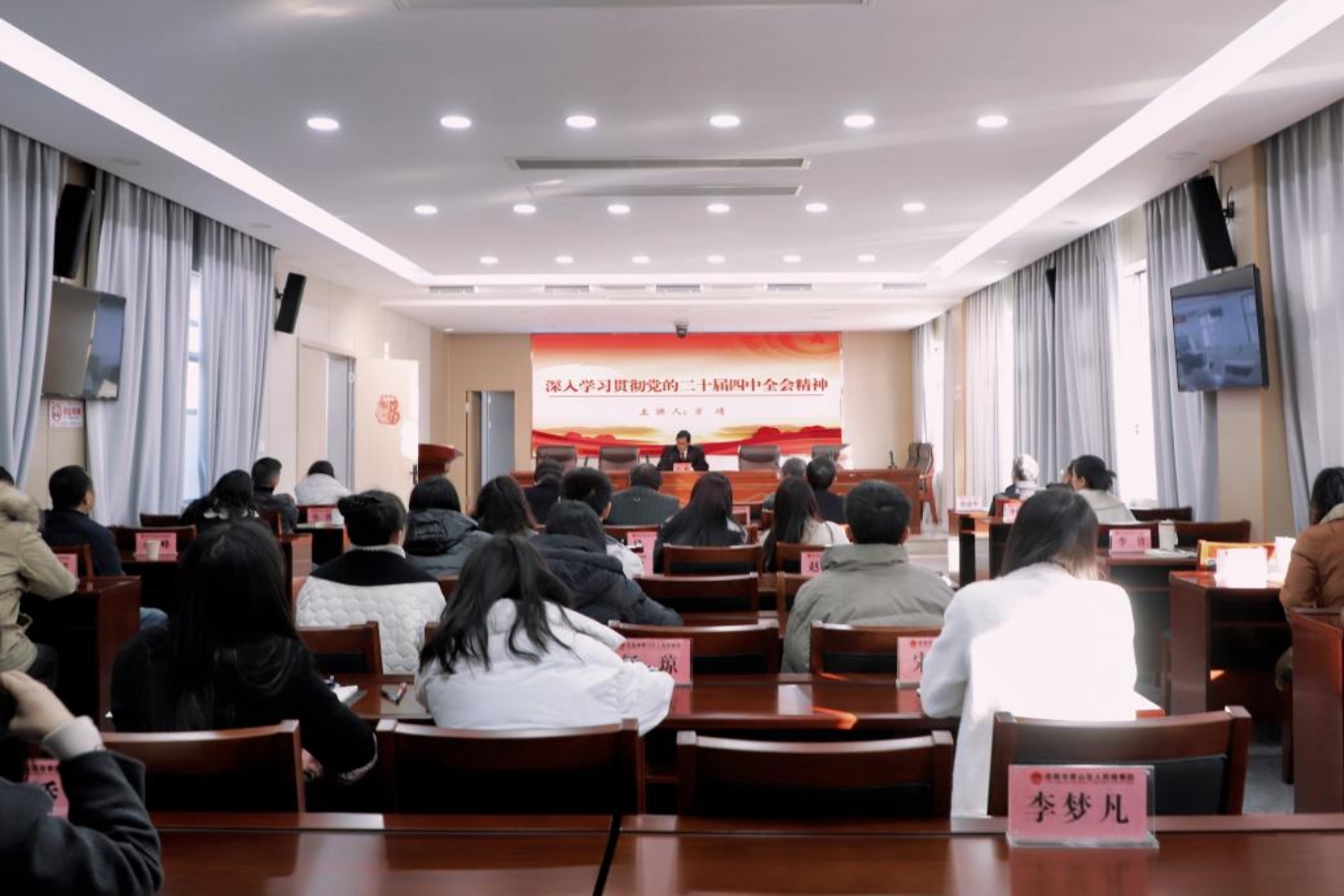 为深入学习贯彻党的二十届四中全会精神,把全院干警的思想和行动统一到全会精神上来,12月15日,君山区人民检察院召开党的二十届四中全会精神专题宣讲会。院党组书记、检察长方靖为全院干警作专题宣讲。