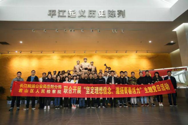 近日,君山区检察院联合长江航运公安局岳阳分局赴平江起义纪念馆统一组织开展“坚定理想信念,激扬青春活力”主题党、团日活动。
